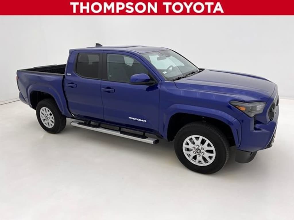 Thompson Toyota is pleased to offer you a True Market Priced Vehicle. This 2024 Toyota Tacoma SR5 comes equipped with notable features like: Toyota Combined Certified, 4WD, 3.583 Axle Ratio, 4-Wheel Disc Brakes, 6 Speakers, ABS brakes, Air Conditioning, All Weather Floor Liners (TMS), Alloy wheels, AM/FM radio: SiriusXM, Anti-whiplash front head restraints, Apple CarPlay/Android Auto, Auto High-beam Headlights, Auto-dimming Rear-View mirror, Brake assist, Bumpers: body-color, Chrome Exhaust Tip (TMS), Door Edge Guard (TMS), Door Panel Scuff Protector (TMS), Driver door bin, Dual front impact airbags, Dual front side impact airbags, Electronic Stability Control, Emergency communication system: Safety Connect (1-year trial), Exterior Parking Camera Rear, Fabric Seat Trim (FF), Four wheel independent suspension, Front anti-roll bar, Front Bucket Seats, Front Center Armrest, Front fog lights, Front reading lights, Fully automatic headlights, Heated door mirrors, Illuminated entry, Knee airbag, Low tire pressure warning, Occupant sensing airbag, Outside temperature display, Overhead airbag, Overhead console, Panic alarm, Passenger door bin, Power door mirrors, Power steering, Power windows, Radio: 8" Toyota Audio Multimedia, Rear step bumper, Rear window defroster, Remote keyless entry, Silver Oval Tube Step (TMS), Speed control, Speed-sensing steering, Split folding rear seat, Spray-On Bed Liner (TMS), Steering wheel mounted audio controls, Tachometer, Telescoping steering wheel, Tilt steering wheel, Traction control, Trip computer, Variably intermittent wipers, and Wheels: 17" Styled Alloy.