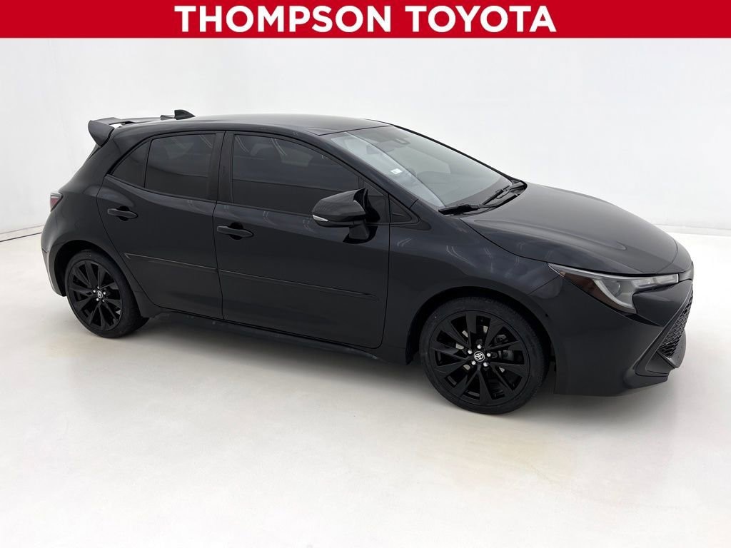 Thompson Toyota is pleased to offer you a True Market Priced Vehicle. This 2021 Toyota Corolla Hatchback SE Nightshade Edition comes equipped with notable features like: All-Weather Floor Liner Package (TMS) (All-Weather Floor Liners (TMS)), Nightshade Package, 4-Wheel Disc Brakes, 6 Speakers, ABS brakes, Air Conditioning, Alloy Wheel Locks (TMS) (PPO), Alloy wheels, AM/FM radio: SiriusXM, Apple CarPlay/Android Auto, Auto High-beam Headlights, Automatic temperature control, Body Side Moldings (TMS), Brake assist, Bumpers: body-color, Compass, Delay-off headlights, Driver door bin, Driver vanity mirror, Dual front impact airbags, Dual front side impact airbags, Electronic Stability Control, Emergency communication system: Safety Connect with 1-year trial, Exterior Parking Camera Rear, Fabric Upholstery, Four wheel independent suspension, Front anti-roll bar, Front Bucket Seats, Front Center Armrest, Front reading lights, Heated door mirrors, Illuminated entry, Knee airbag, Leather Shift Knob, Low tire pressure warning, Occupant sensing airbag, Outside temperature display, Overhead airbag, Overhead console, Panic alarm, Passenger door bin, Passenger vanity mirror, Power door mirrors, Power steering, Power windows, Preferred Owners Portfolio (TMS), Radio data system, Radio: Audio, Rear anti-roll bar, Rear seat center armrest, Rear side impact airbag, Rear window defroster, Rear window wiper, Remote keyless entry, Removable Cross Bars (TMS), Security system, Speed control, Speed-sensing steering, Split folding rear seat, Spoiler, Sport Front Seats, Steering wheel mounted audio controls, Tachometer, Telescoping steering wheel, Tilt steering wheel, Traction control, Trip computer, Turn signal indicator mirrors, Variably intermittent wipers, and Wheels: 18" Black Metallic Painted Aluminum.