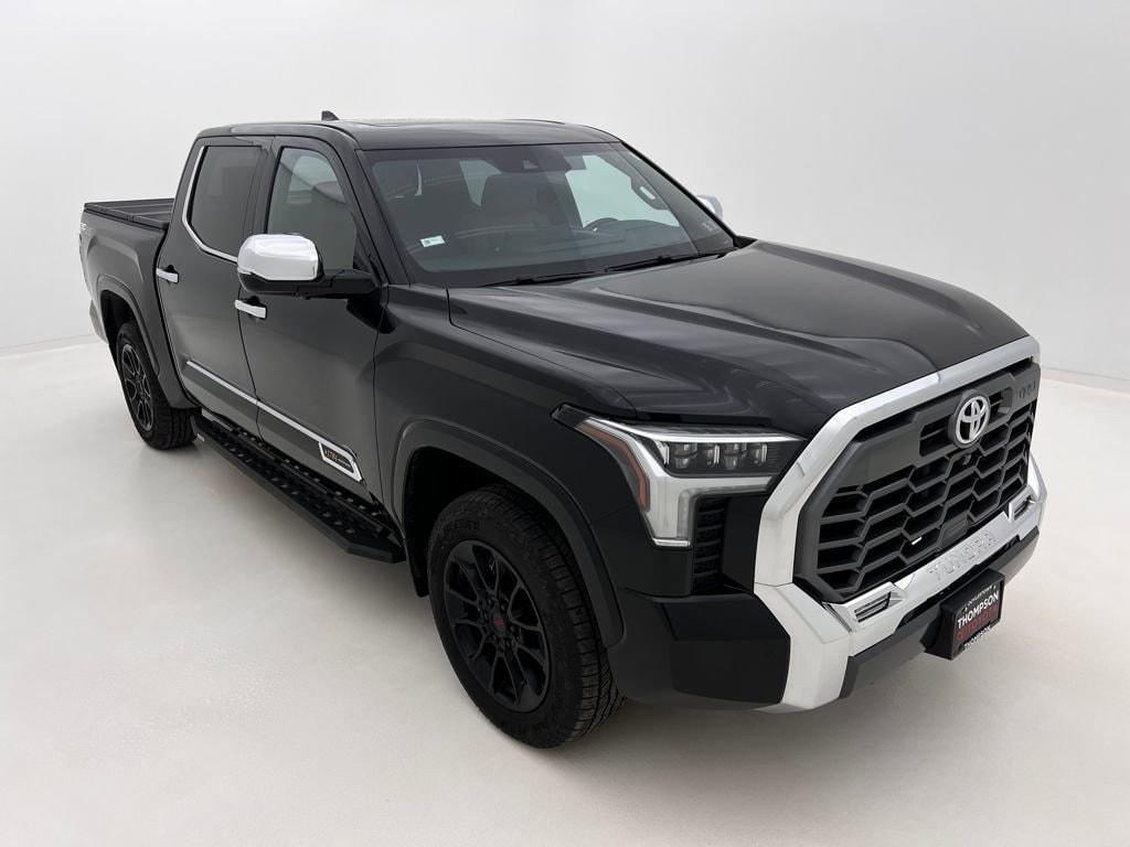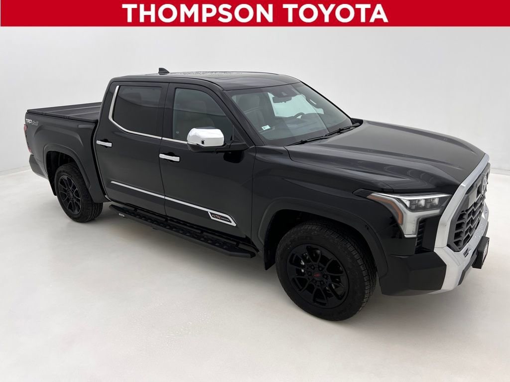Thompson Toyota is pleased to offer you a True Market Priced Vehicle. This 2024 Toyota Tundra 1794 comes equipped with notable features like: TRD Off-Road Package (Front & Rear Mud Guards, Multi-Terrain Back Monitor, and Wheels: 20" Black Alloy), 4WD, Saddle Tan Leather, 10-Way Pwr Adj Heated and Ventilated Front Seats, 12 Speakers, 3.31 Axle Ratio, 4-Wheel Disc Brakes, ABS brakes, Air Conditioning, Alloy wheels, AM/FM radio: SiriusXM, Apple CarPlay/Android Auto, Auto High-beam Headlights, Auto-dimming door mirrors, Auto-dimming Rear-View mirror, Automatic temperature control, Blind Spot Monitor, Brake assist, Bumpers: body-color, Chrome Exhaust Tail Pipe & Diffuser, Chrome Plated Power Folding Outside Mirrors, Delay-off headlights, Driver door bin, Driver vanity mirror, Dual front impact airbags, Dual front side impact airbags, Electronic Stability Control, Emergency communication system: Safety Connect (10-year trial), Exterior Parking Camera Rear, Front anti-roll bar, Front Bucket Seats, Front Center Armrest, Front dual zone A/C, Front fog lights, Front reading lights, Front wheel independent suspension, Fully automatic headlights, Garage door transmitter: HomeLink, Head Up Display (HUD), Heated door mirrors, Heated front seats, Heated rear seats, Heated steering wheel, Illuminated entry, Knee airbag, Leather Seat Trim, Leather Shift Knob, Low tire pressure warning, Memory seat, Navigation System, Occupant sensing airbag, Outside temperature display, Overhead airbag, Overhead console, Panic alarm, Panoramic View Back Monitor, Passenger door bin, Passenger vanity mirror, Power door mirrors, Power driver seat, Power moonroof, Power passenger seat, Power steering, Power windows, Radio data system, Radio: Audio Multimedia System, Rain sensing wipers, Rear reading lights, Rear seat center armrest, Rear step bumper, Rear window defroster, Remote keyless entry, Safety Connect, Security system, Speed control, Speed-sensing steering, Split folding rear seat, Stainless Steel Door Edge Guards (TMS), Steering wheel memory, Steering wheel mounted audio controls, Tachometer, Telescoping steering wheel, Tilt steering wheel, Traction control, Trip computer, Turn signal indicator mirrors, Variably intermittent wipers, Ventilated front seats, Ventilated rear seats, Voltmeter, and Wheels: 20" Machined Finish Alloy.